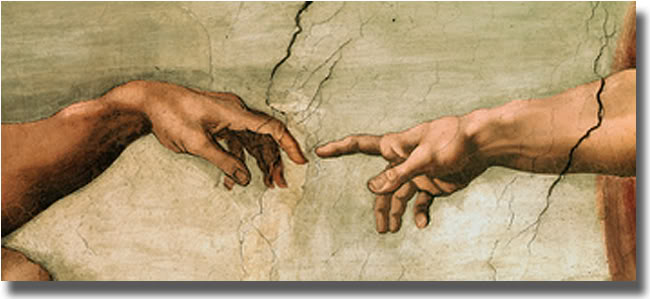 This stunning masterwork is comprised of some 300 figures adorning more than 5800 square feet of the St Peter's Sistine Chapel and was completed within four years. In this particular detail from the Sistine Chapel God creates Adam. The touch of God's hand gives newly created Adam life and thus begins human kind. The symbolic depiction of this life-giving act is one of the most profound and awe-inspiring artistic images ever painted.