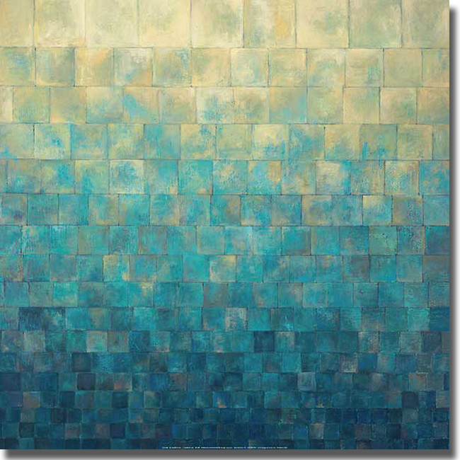 Blocks of color shift and evolve in a weave of dramatic transitional coated to prevent fading this artist grade canvas has natural colored edges and is stretched using a spline finish.