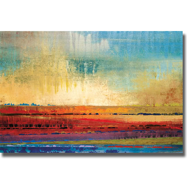 This stretched canvas print is the result of sophisticated digital printing technology in which the image is printed directly onto an artist-grade. An acrylic coating protects the stunning giclee print from dust moisture and fading. It is ready to hang and UV coated to prevent fading. Selina Rodriguez's vivid contemporary art will brighten and enhance any home or office. See Horizons's II by Artistic Home Gallery to create a matched set.