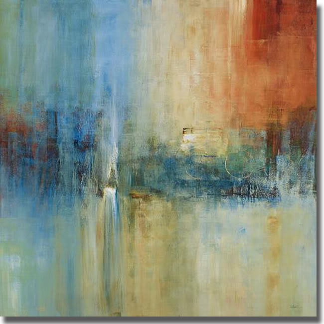 Sublime use of blues adds dimensionality to this stunning abstract. Great for adding chic color notes to a dull space this artist grade canvas has natural colored edges and is stretched using a high end spline finish. This canvas is ready to hang and UV coated to prevent fading.